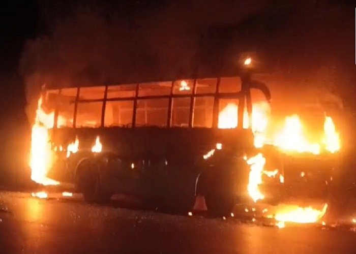 जानकारी के मुताबिक, शर्मा ट्रेवल्स (CG 07 E 1171) की बस बारातियों को कांकेर जिले के अरौद गांव से लेकर बालोद जिले के बड़गांव आ रही थी. जैसे ही बस पुरुर थाना क्षेत्र के जगतरा मंदिर के पास पहुंची अचानक आग लग गई. गनीमत रही कि बस में मौजूद लोगों ने किसी तरह बाहर निकलकर अपनी जान बचाई, जिससे जनहानि होने से टल गई.