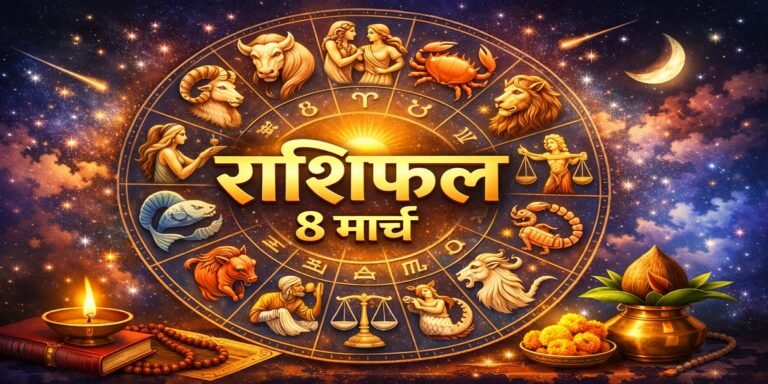 Aaj Ka Rashifal 8 March 2026: 8 मार्च 2026, रविवार को चैत्र कृष्ण पक्ष की पंचमी तिथि है। आज दोपहर 1:32 बजे तक स्वाती नक्षत्र रहेगा और उसके बाद विशाखा नक्षत्र आरंभ होगा। इसके साथ ही आज रंग पंचमी का पर्व भी मनाया जा रहा है। ग्रह-नक्षत्रों की स्थिति सभी 12 राशियों के जीवन पर अलग-अलग प्रभाव डाल सकती है।