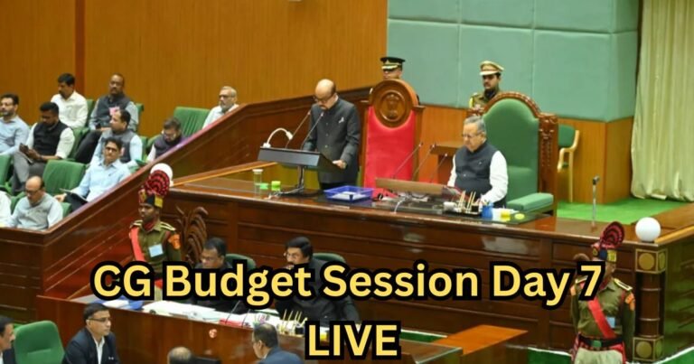CG Budget Session Day 7 LIVE: छत्तीसगढ़ विधानसभा के बजट सत्र के सातवें दिन की कार्रवाई शुरू हो गई है। आज सदन में कई अहम मुद्दों पर चर्चा होगी। प्रश्नकाल के दौरान मुख्यमंत्री और मंत्रियों द्वारा विधायकों के सवालों के जवाब दिए जाएंगे। इसके अलावा ध्यानाकर्षण प्रस्ताव, विभिन्न विभागों की अनुदान मांगों और अन्य विषयों पर भी चर्चा होगी। साथ ही सदन में प्रतिवेदन और याचिकाएं भी प्रस्तुत की जाएंगी। प्रश्नकाल में मुख्यमंत्री विष्णुदेव साय, मंत्री केदार कश्यप और टंक राम वर्मा विधायकों के सवालों के जवाब देंगे।
