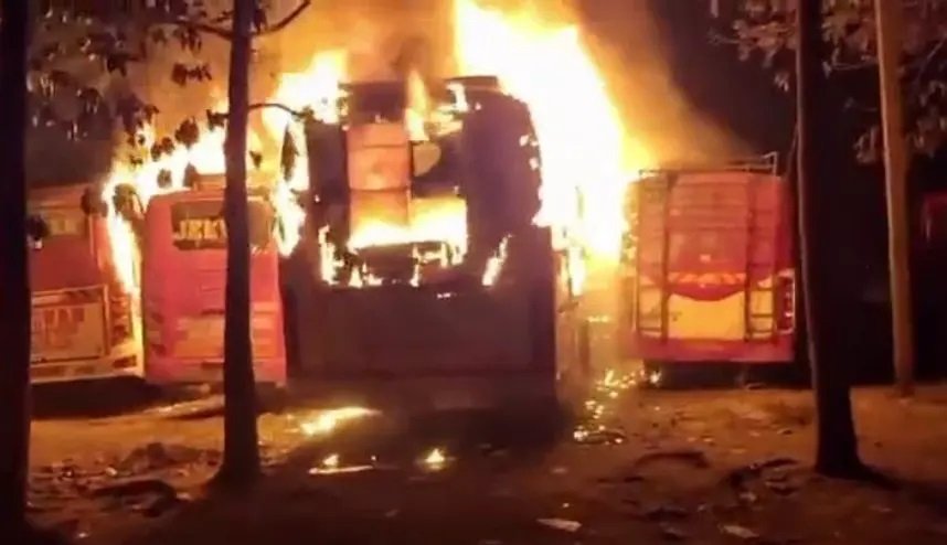 घटना को लेकर बस संचालकों में हड़कंप मच गया है. शरारती तत्वों पर आग लगाने की आशंका जताई जा रही है. जानकारी के मुताबिक, घटना मंगलवार की देर रात की है. पार्किंग में खड़ी बसों में अचानक आग भड़क उठी, जिसकी चपेट में 5 बसें आ गई. मौके पर मौजूद लोगों ने घटना का वीडियो अपने मोबाइल में बना लिया. इसमें बसें आग की चपेट में नजर आ रहीं हैं.