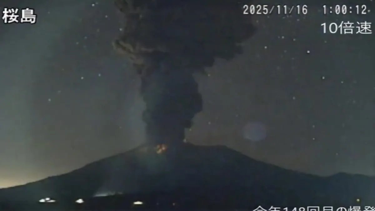 जापान के दक्षिण-पश्चिम क्यूशू स्थित सकुराजिमा ज्वालामुखी में 16 नवंबर, 2025 की सुबह भीषण विस्फोट हुआ, जिससे ज्वालामुखी की राख और धुएं का एक विशाल गुबार 4,400 मीटर (लगभग 14,400 फीट) की ऊंचाई तक फैल गया। मिनामिडाके क्रेटर से शुरू हुए इस विस्फोट से निकली बड़ी मात्रा में राख काफी दूर तलक फैल गईं, जिसके कारण कागोशिमा, कुमामोटो और मियाज़ाकी सहित आसपास के कई प्रान्तों में राख गिरने की चेतावनी जारी कर दी गई है।